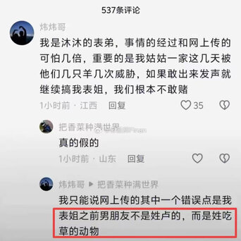【三只羊主播沫沫的表弟发声了,事情远比我们想象的复杂】据沫沫的表弟称,沫沫的事情比网上的爆料可怕好几倍。他姑姑一家这几天被三只羊的人几次威胁,不准他们出来发声,不然就继续搞沫沫。